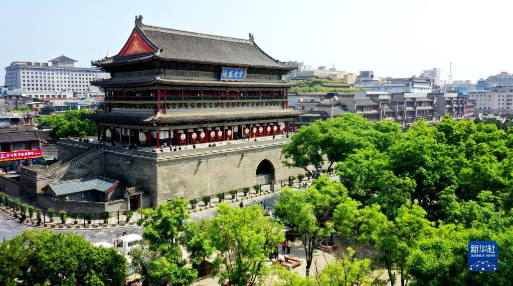 西安鼓樓(4月25日攝,無人機照片)。