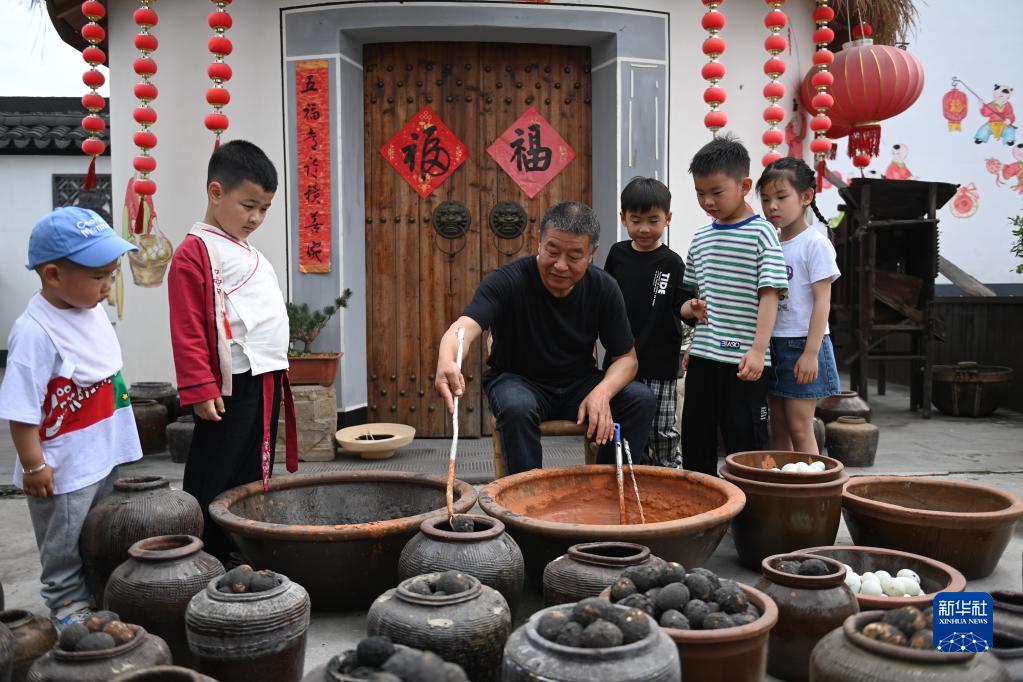 臨近立夏節氣,浙江省杭州市臨平區塘棲鎮丁山河村的村民們做米塑“立夏狗”、腌灰鴨蛋、搭土灶蒸“野米飯”等,用江南水鄉傳統的民俗迎接初夏。