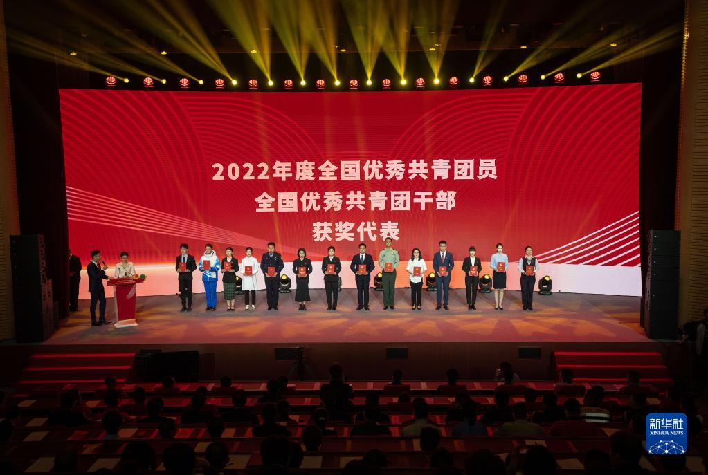 5月4日,在北京中央團校舉行的第27屆“中國青年五四獎章”暨2022年度“兩紅兩優”頒獎活動上,全國優秀共青團干部獲獎代表合影留念。