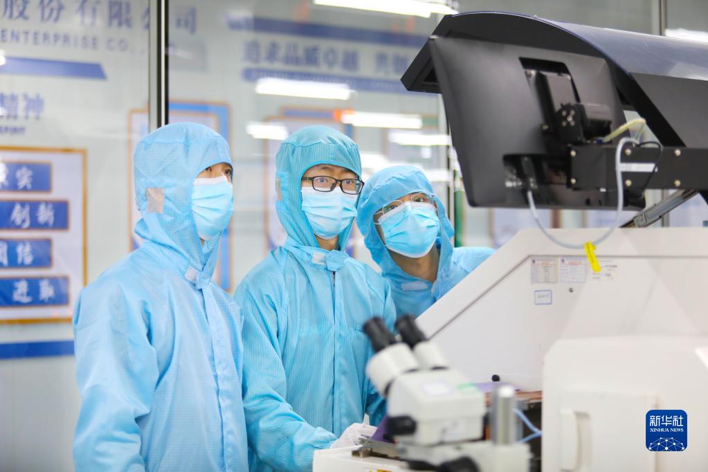 5月4日,青年技術員在重慶平偉實業股份有限公司無塵生產車間調試芯片生產設備。