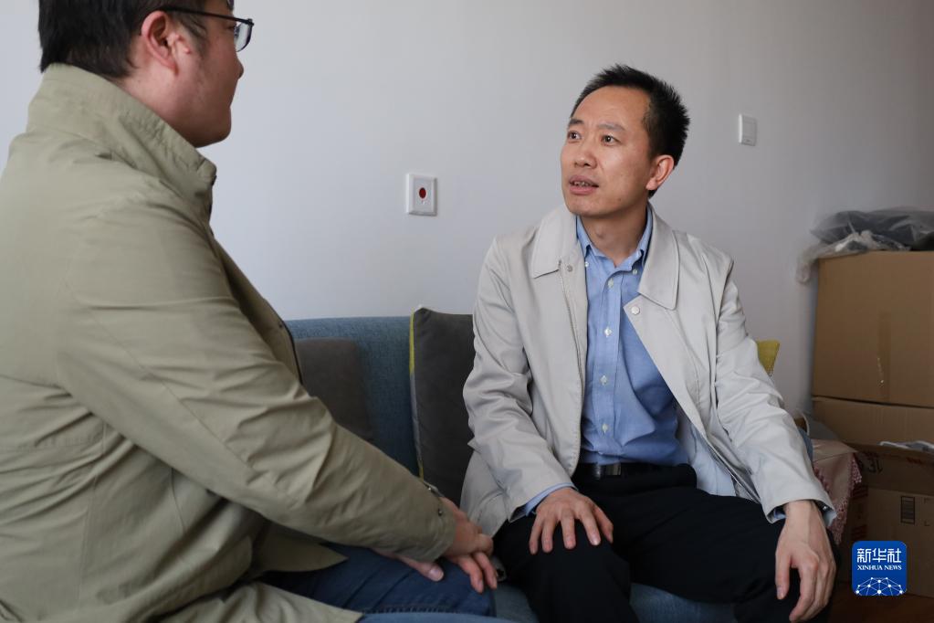 4月12日,曹云山(右)在肺動脈高壓疾病患者家里走訪。