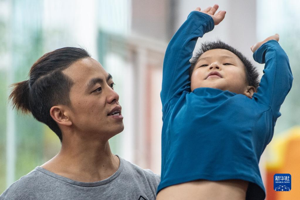 2022年12月6日,重慶躍飛跑酷隊員文舜堯在俱樂部帶領小朋友進行跑酷基本動作練習。