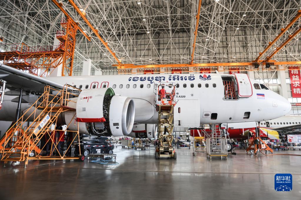 當日,柬埔寨國家航空公司的一架空客A320飛機停在海南自貿港一站式飛機維修產業基地定檢機庫內,接受海航技術旗下大新華飛機維修服務有限公司提供的高級別定檢維修服務。據悉,這是柬埔寨國家航空首次到海南自貿港進行進境飛機維修業務,也是海南自貿港一站式飛機維修產業基地投入運營以來首次為境外飛機執行高級別定檢維修業務。維修所涉及航材部件均享受維修航材免稅的海南自貿港稅收優惠政策。