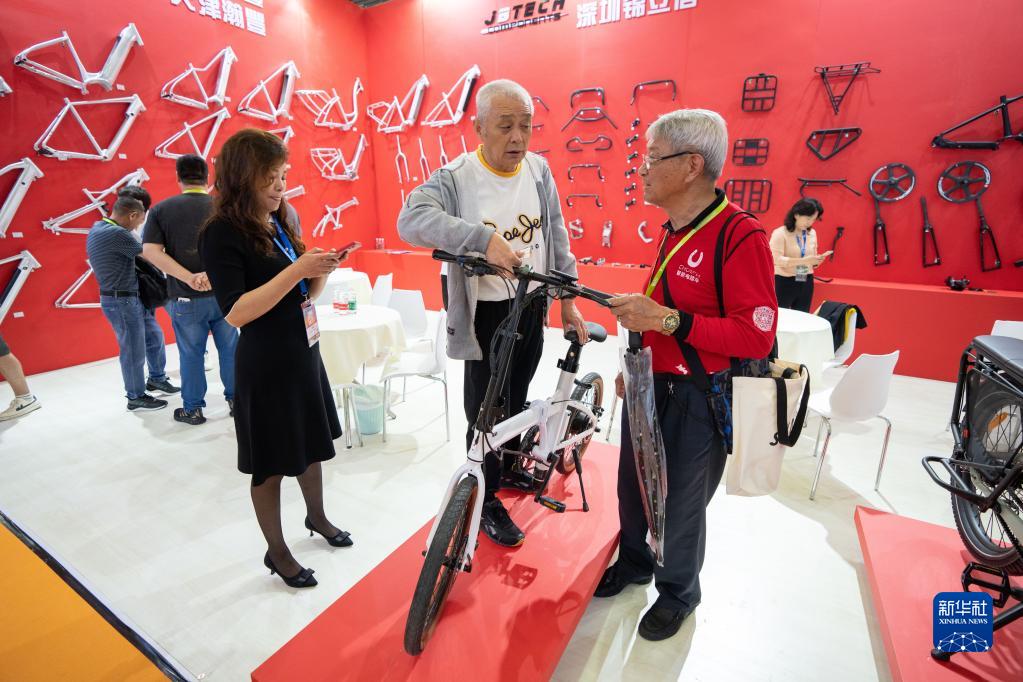 5月5日,在第31屆中國國際自行車展覽會上,觀眾觀看折疊自行車。