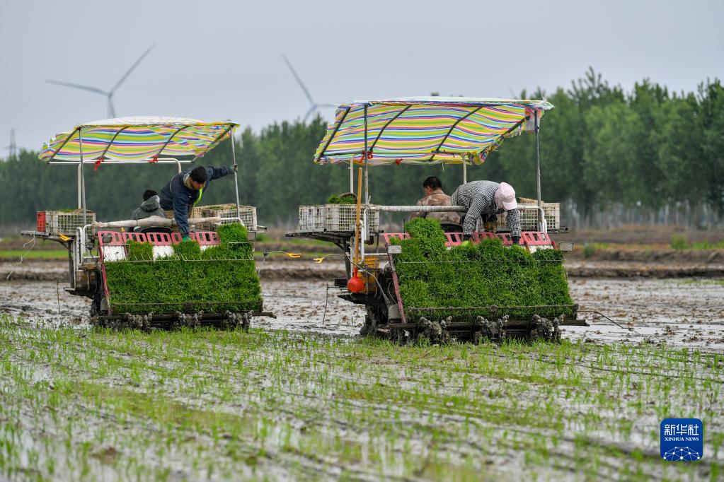 臨近立夏節氣,天津市各涉農區組織開展大規模機械化水稻插秧,田間地頭一派繁忙景象。