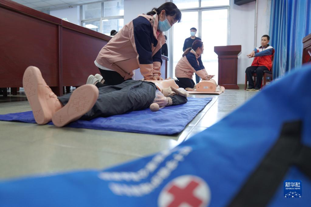 5月5日,學員在內丘縣紅十字會培訓教室學習心肺復蘇知識。