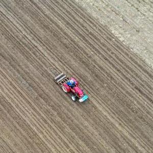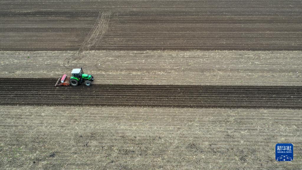 5月5日,在吉林省長春市九臺區龍嘉街道水鄉村,農民駕駛農機進行春耕作業(無人機照片)。
