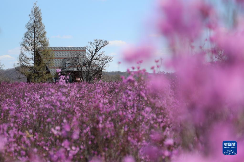 近日,內蒙古呼倫貝爾市鄂倫春自治旗達爾濱湖國家森林公園的杜鵑競相綻放,進入觀賞期。