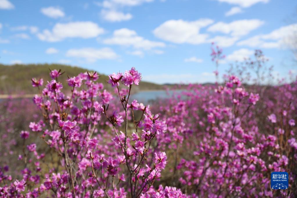 近日,內蒙古呼倫貝爾市鄂倫春自治旗達爾濱湖國家森林公園的杜鵑競相綻放,進入觀賞期。