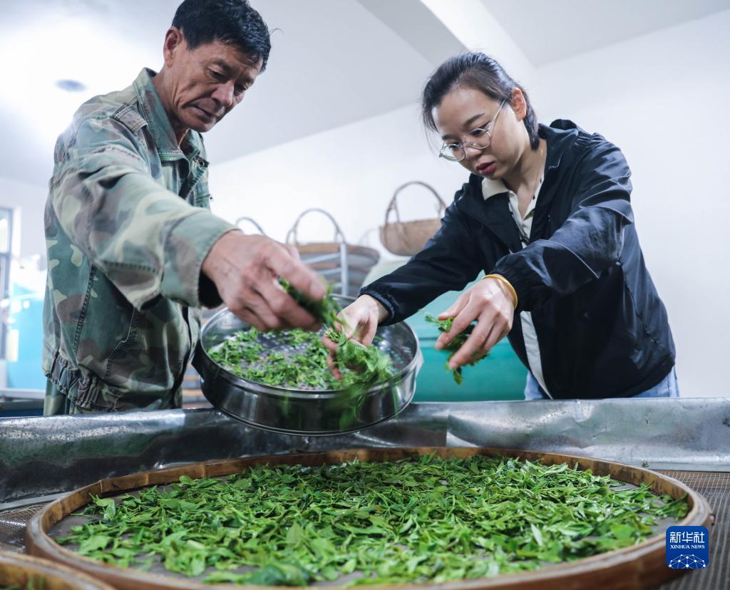 5月6日,湖州市長興縣煤山鎮五通山村羅岕茶種植區的茶農將蒸青好的羅岕茶進行攤涼。