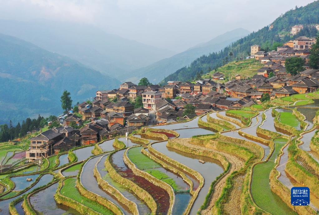 5月6日拍攝的貴州省從江縣加榜鄉加車村的梯田(無人機照片)。
