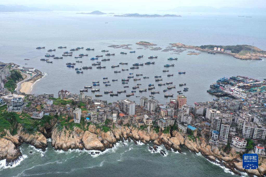4月30日,準備休漁的漁船停泊在福建省福州市連江縣苔菉鎮北茭村漁港(無人機照片)。