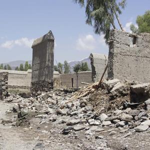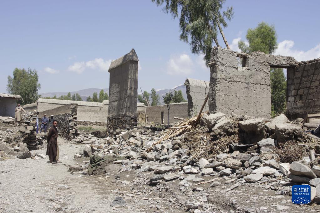 這是5月6日在阿富汗楠格哈爾省拍攝的遭強降雨和洪水損毀的房屋廢墟。