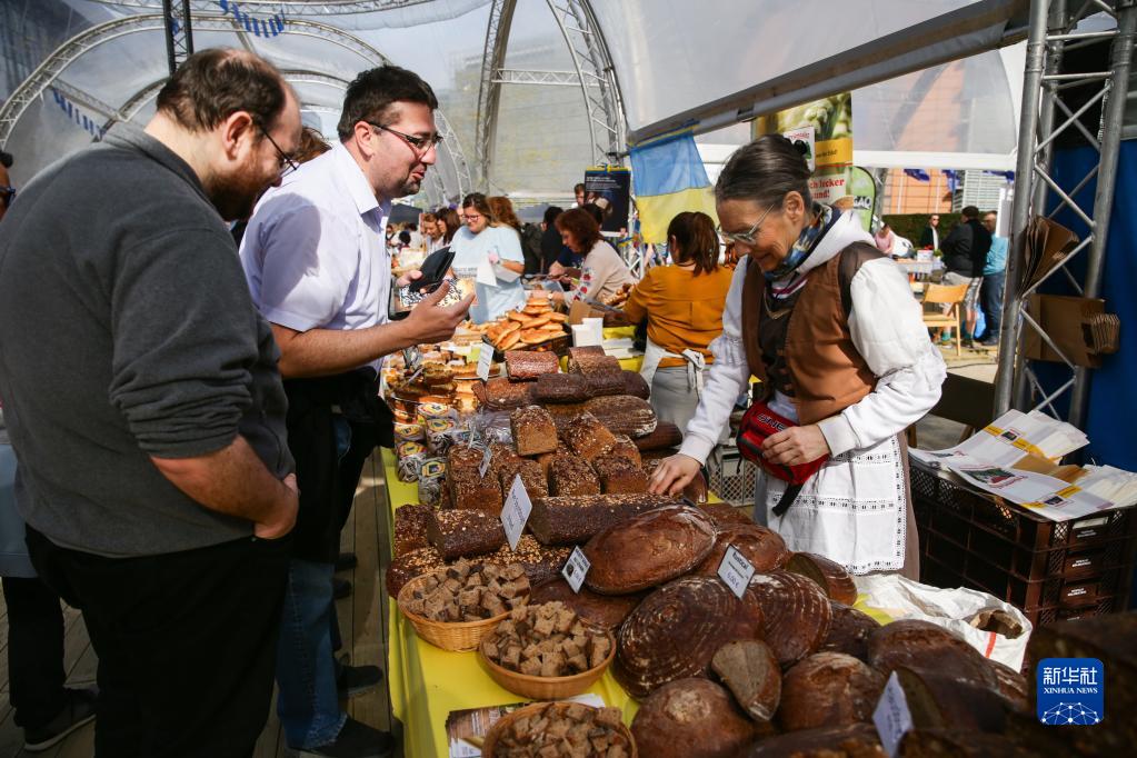 布魯塞爾當日舉行面包節活動,人們可在活動現場品嘗、購買來自歐洲多地的風格各異的面包。