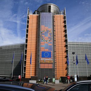 5月6日,人們在比利時布魯塞爾的歐盟委員會總部大廈外休息。