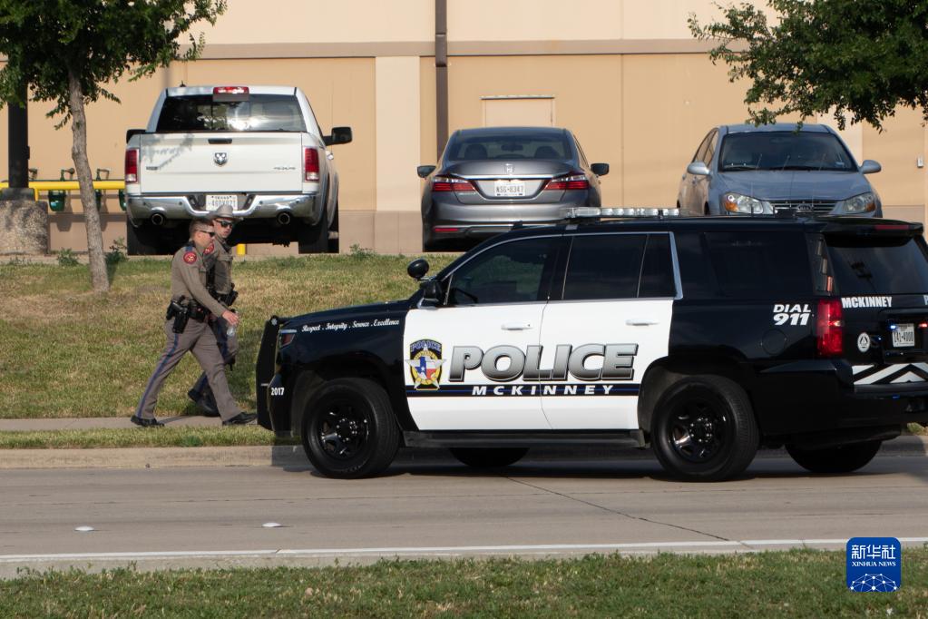 5月6日,警車停在美國得克薩斯州達拉斯近郊發生槍擊事件的購物中心附近。