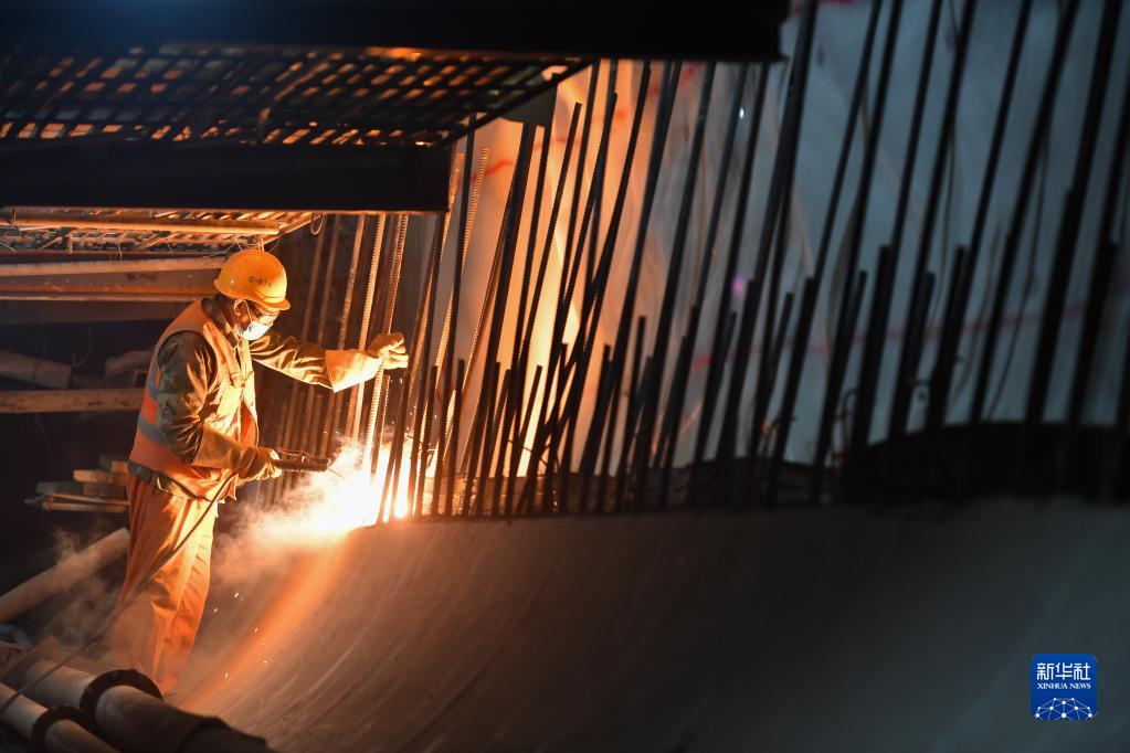 5月7日,工人在梅浦聯絡線項目建設現場作業。