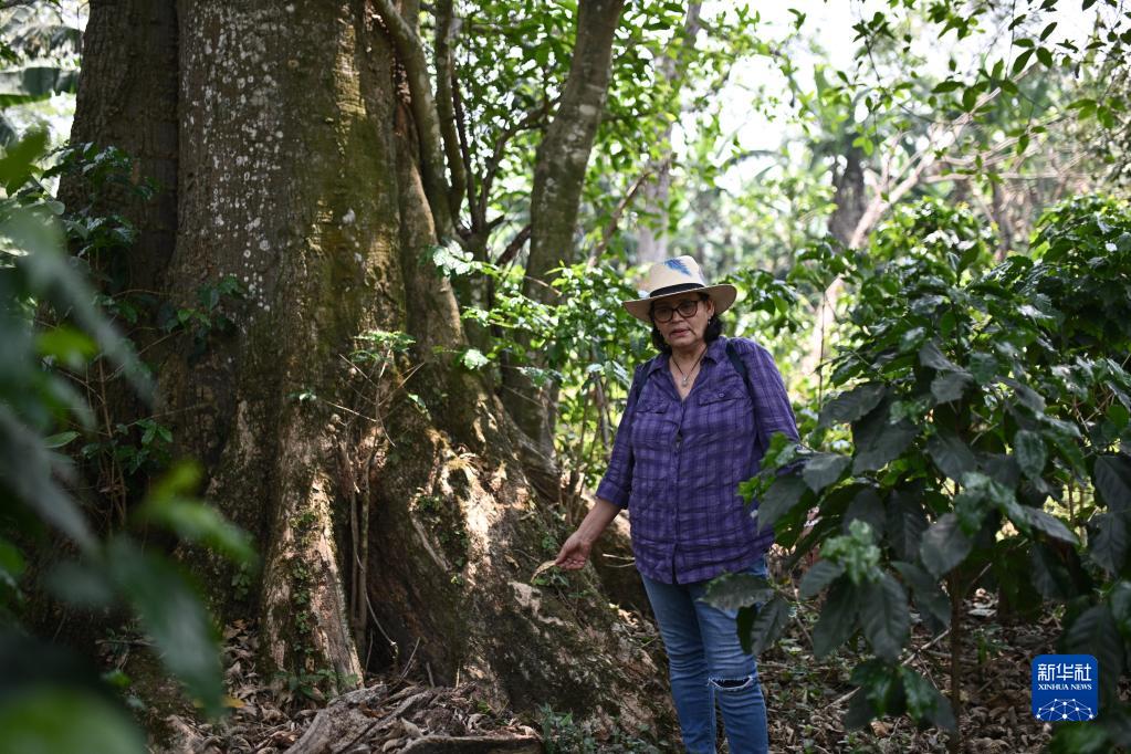 5月6日,在洪都拉斯馬爾卡拉,工人在一處咖啡種植園查看作物長勢。