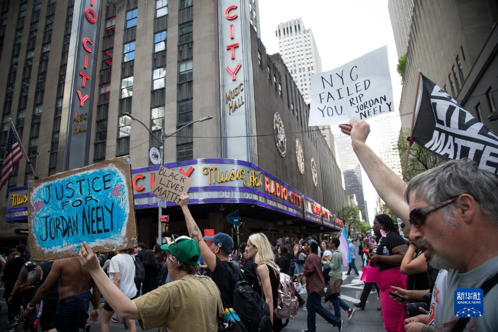 美國紐約市無家可歸黑人男子喬丹·尼利5月1日在地鐵遭白人男子丹尼爾·潘尼扼喉身亡,當地警方對潘尼進行問詢后于當天將其釋放。連日來,這一事件引發紐約民眾持續抗議,要求為死者伸張正義。