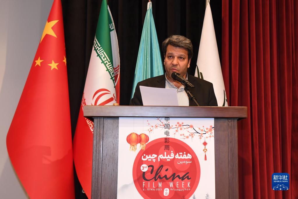 5月6日,在伊朗首都德黑蘭,伊朗文化和伊斯蘭指導部副部長兼電影組織主席哈扎伊在“中國電影周”開幕式上致辭。