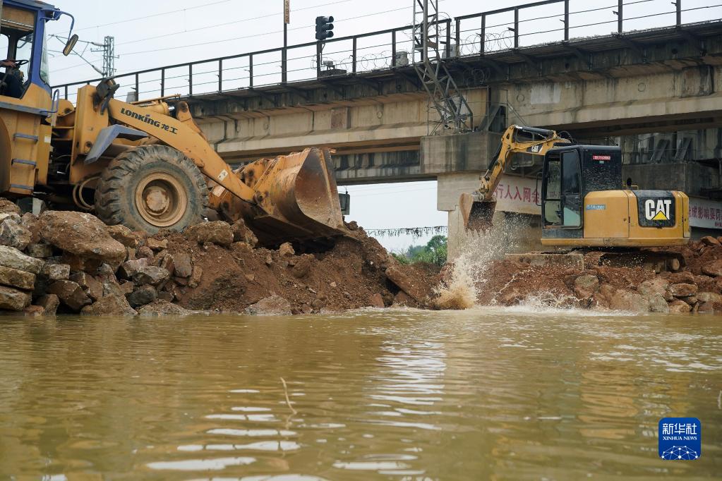 這是在江西省豐城市麗村鎮尚山村拍攝的潰口封堵現場(5月7日攝)。