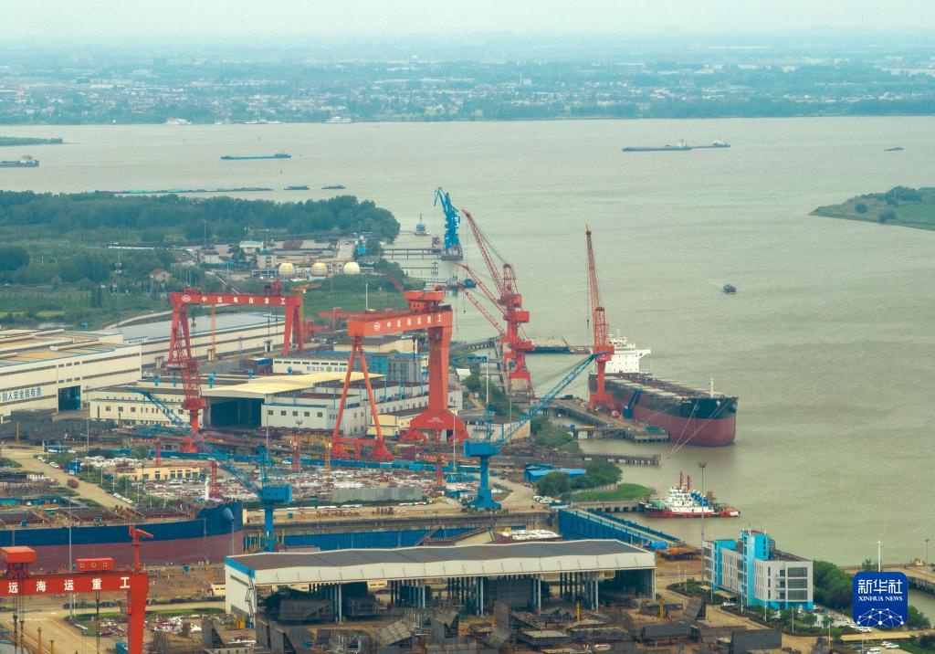 5月7日拍攝的揚州中遠海運重工有限公司生產廠區(無人機照片)。