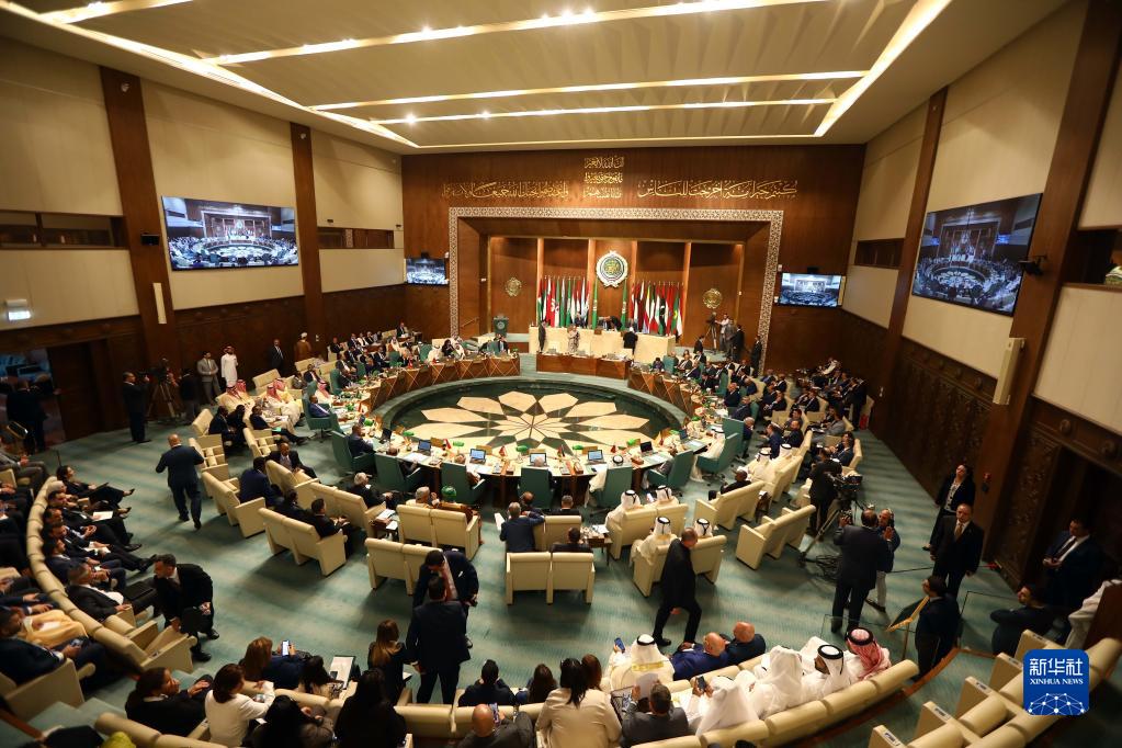 這是5月7日在埃及開羅拍攝的阿拉伯國家聯盟外長級特別會議現場。