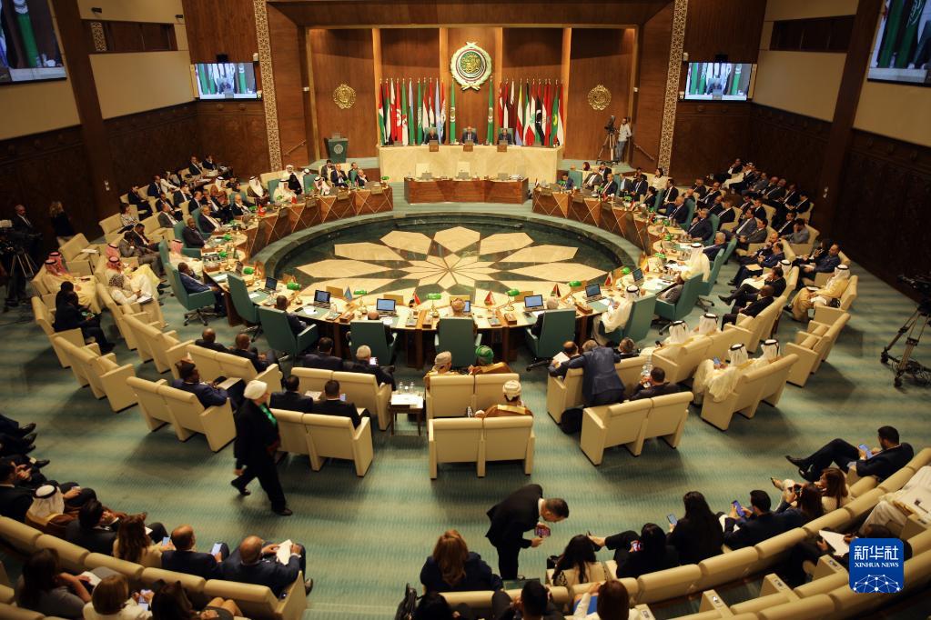 這是5月7日在埃及開羅拍攝的阿拉伯國家聯盟外長級特別會議現場。