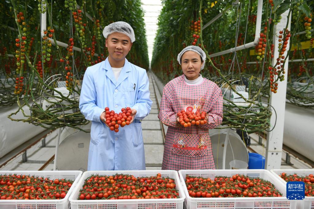 當日,在甘肅省武威市古浪縣黃花灘移民區,古浪越海智能工業化栽培生態項目的職工忙著采收番茄、打包裝箱、發送訂單。據了解,這個智能溫室工業化栽培生態項目應用了溫室環境智能中控技術、智能水肥循環技術等,打造出技術先進、節能環保的現代化智能玻璃溫室,出產的串收番茄口感好、銷路旺,帶動黃花灘移民區大量農戶就業,受雇農民平均月收入超4000元。