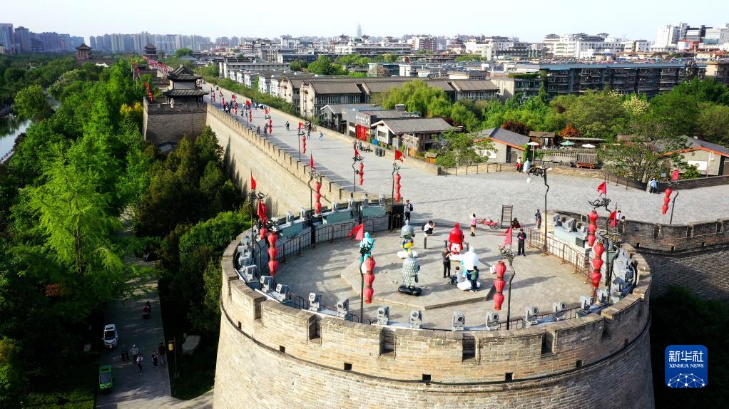 西安城墻西南城角(4月15日攝,無人機照片)。