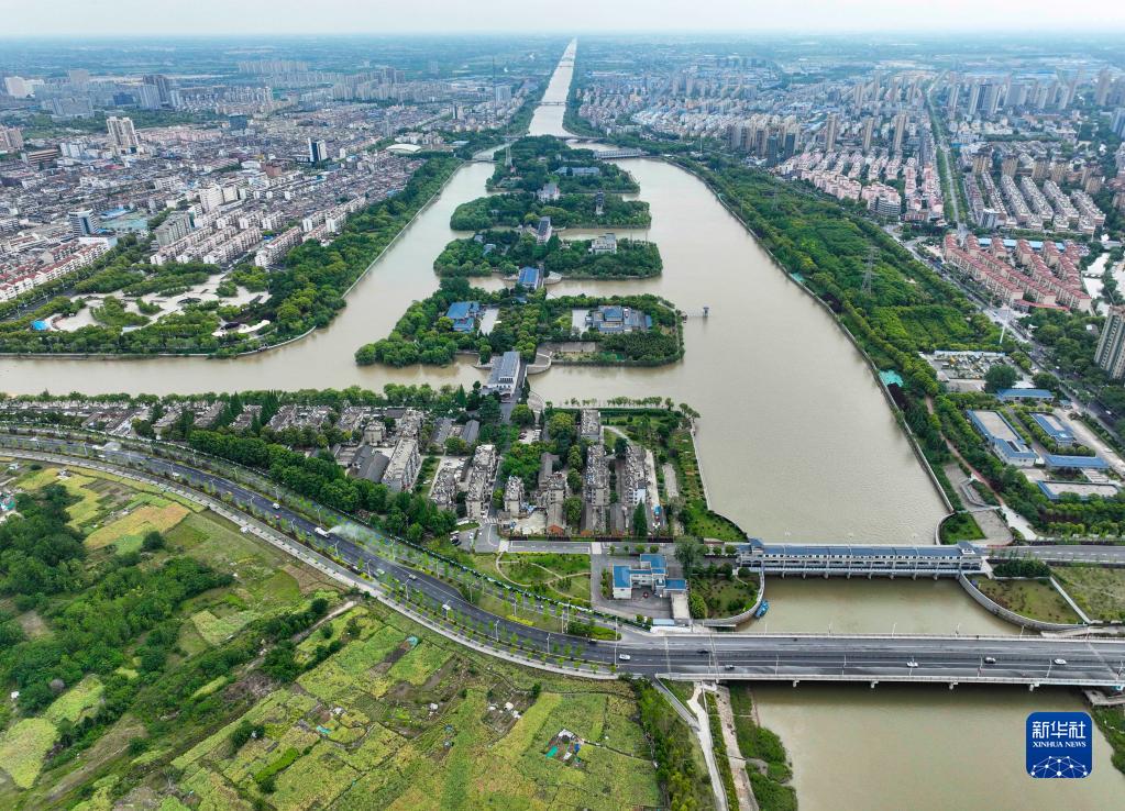5月7日在江蘇省揚州市拍攝的江都水利樞紐(無人機照片)。