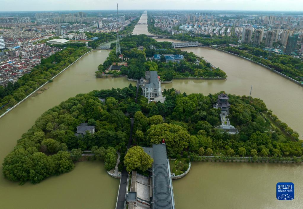 5月7日在江蘇省揚州市拍攝的江都水利樞紐(無人機照片)。