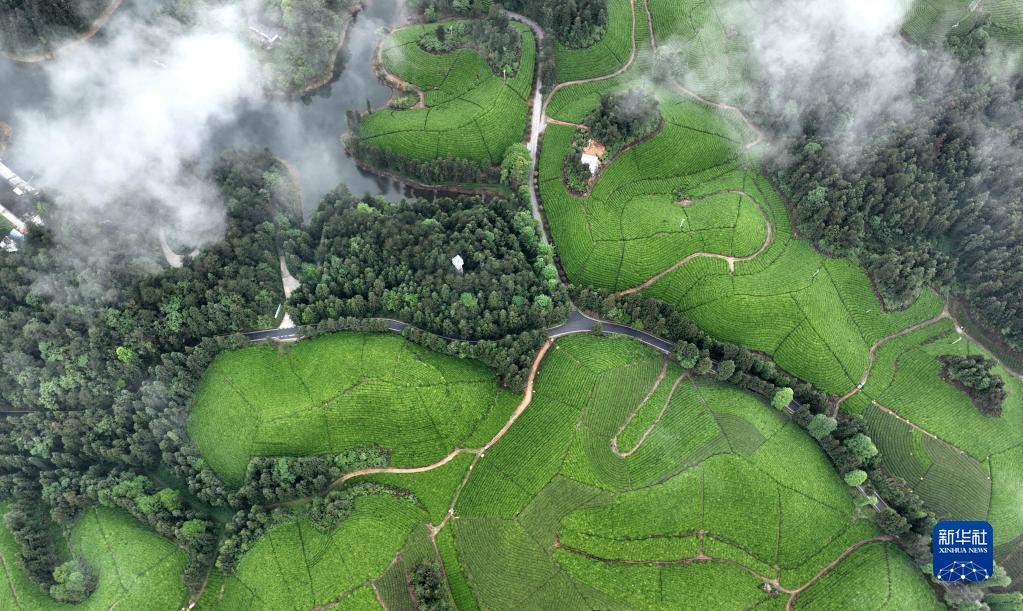 這是5月8日拍攝的鶴峰縣走馬鎮的茶園(無人機照片)。
