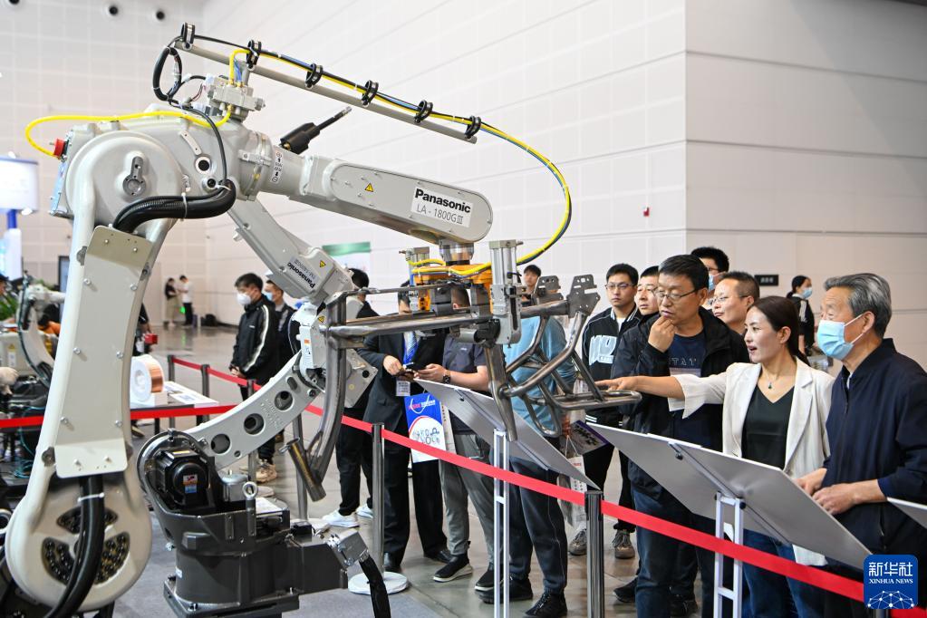 5月8日,在國家會展中心(天津),觀眾參觀展會上展出的工業設備。