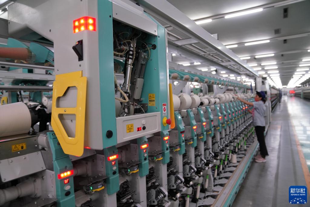 5月8日,在無錫一棉紡織集團長江車間,自動絡筒機在工作。