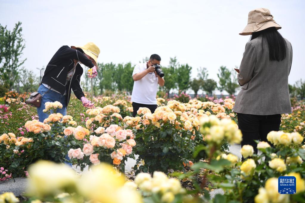 5月8日,在南陽市月季國家林木種質資源庫,工作人員在做月季特性調查。