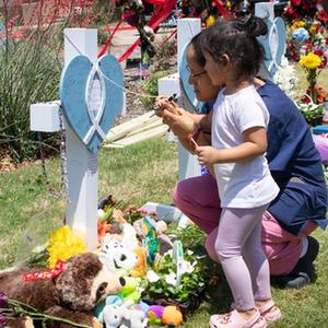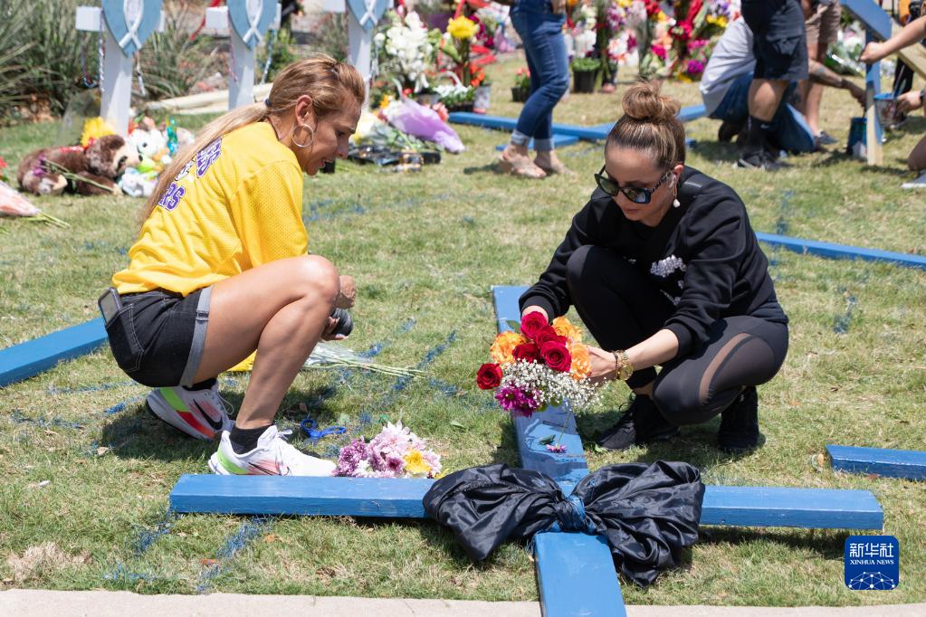5月8日,在美國得克薩斯州達拉斯以北城鎮艾倫,人們在購物中心槍擊事件現場附近悼念受害者。