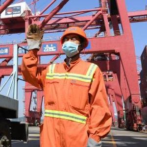 5月9日拍攝的寧波舟山港穿山港區(無人機全景照片)。