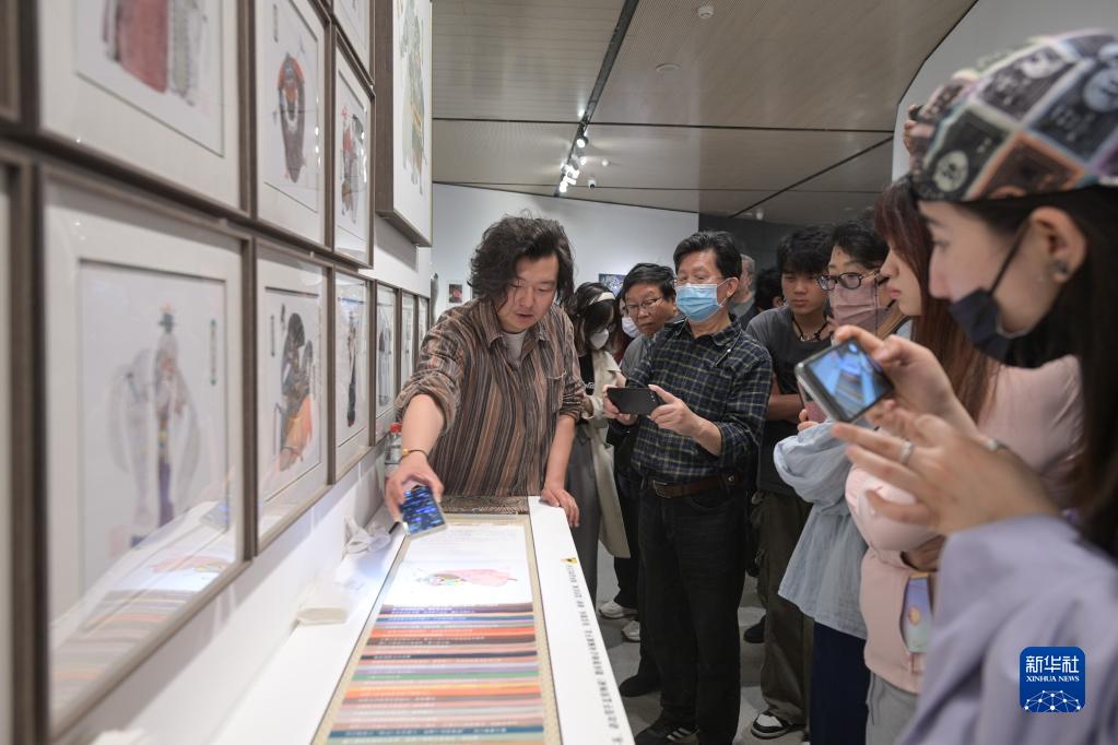 5月9日,作者申杰在展覽現場向觀眾介紹自己的作品。