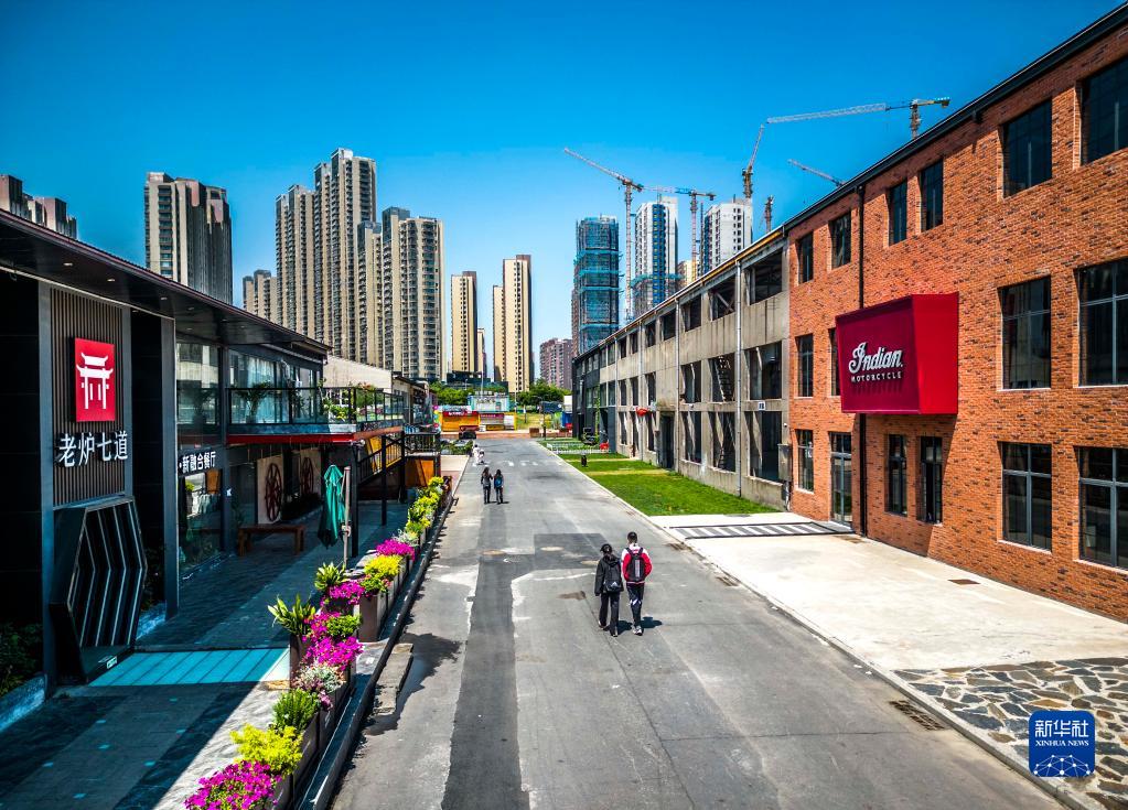 5月9日,市民在由原合肥恒通機械廠老廠房改造的瑤海區180文創藝術街區參觀(無人機照片)。