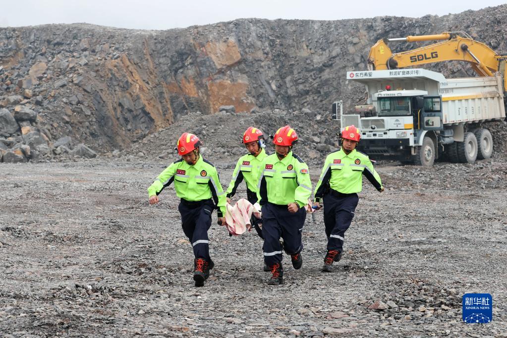 5月9日,在重慶市黔江區一露天非煤礦山演練現場,救援隊員轉移“被困人員”。