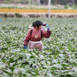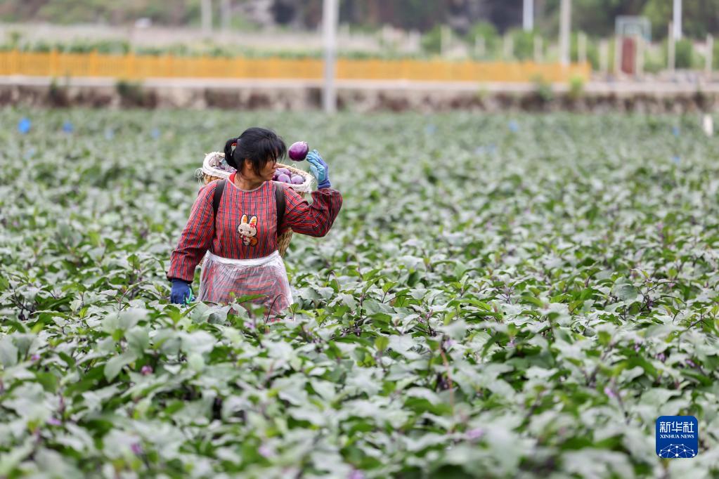 5月9日,貴州省黔南布依族苗族自治州羅甸縣龍坪鎮羅化村村民在采收蔬菜。