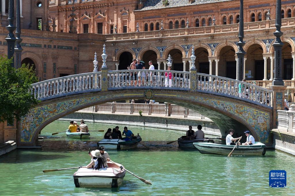 5月7日,游人在西班牙塞維利亞西班牙廣場游玩。