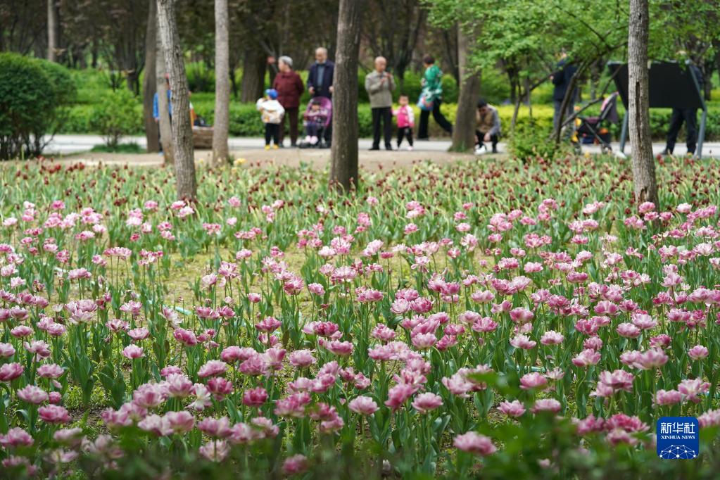 近日,山西省太原市迎澤公園內各色郁金香競相綻放,吸引游人前來觀花賞景。