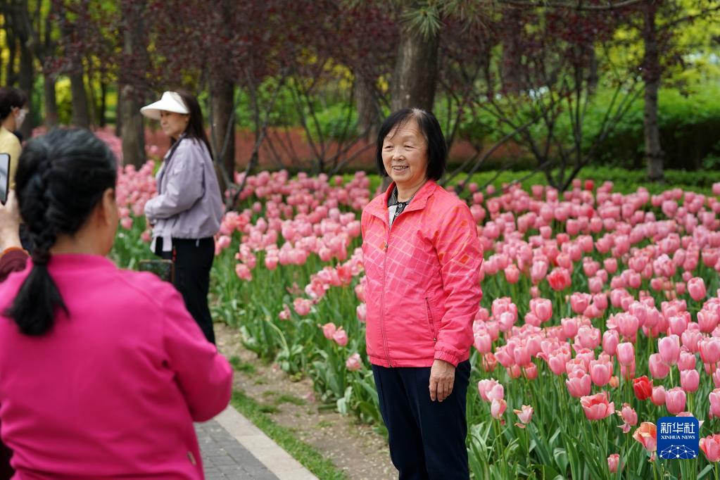 近日,山西省太原市迎澤公園內各色郁金香競相綻放,吸引游人前來觀花賞景。
