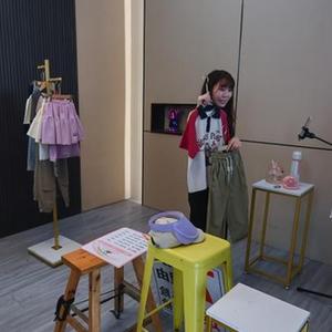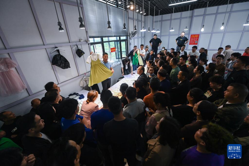 5月10日,在位于湖州吳興區織里鎮的織里國際輕紡城內,商家在進行新款樣衣的展示。