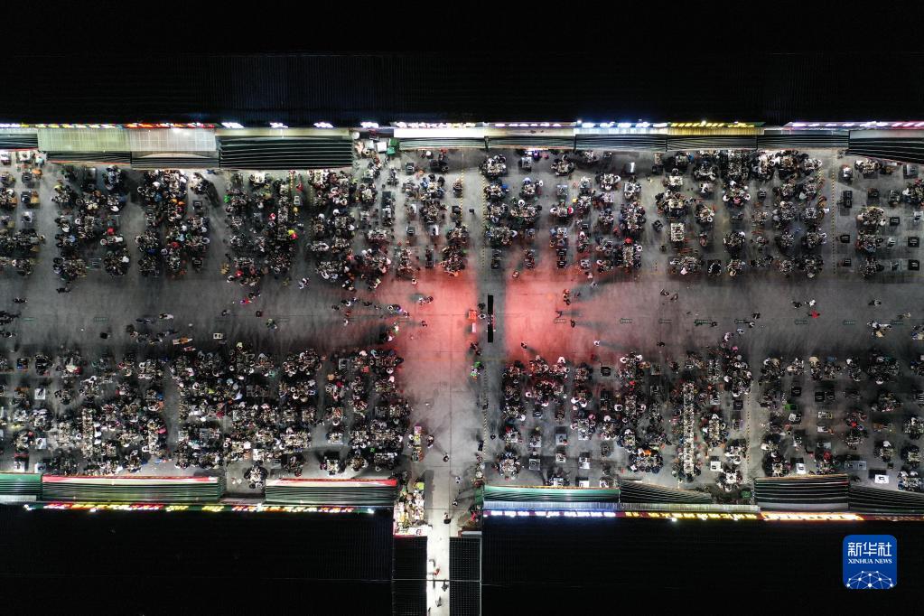 這是位于淄博市臨淄區的臨淄燒烤大院(5月8日攝,無人機照片)。