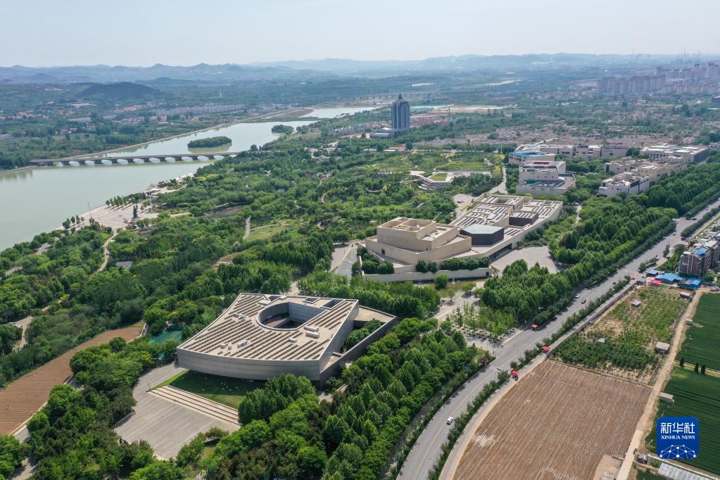 這是位于淄博市臨淄區的齊都文化城(5月8日攝,無人機照片)。
