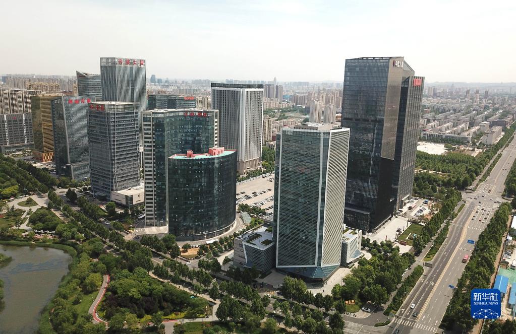 位于淄博市張店區的淄博市金融中心(5月8日攝,無人機照片)。