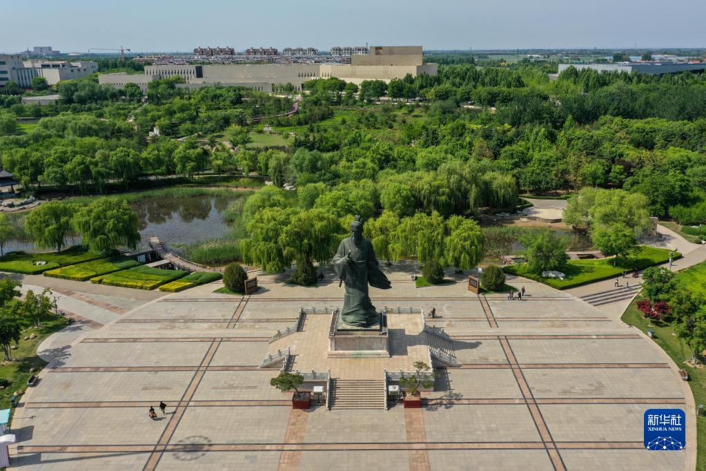 這是位于淄博市臨淄區的太公湖公園(5月8日攝,無人機照片)。